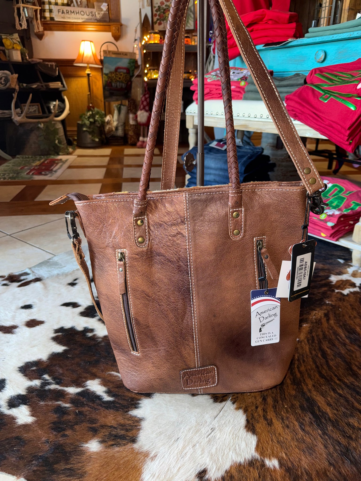 American Darling tooled leather purse with an Aztec design on the front. Concealed carry on the back with multiple inside pockets.