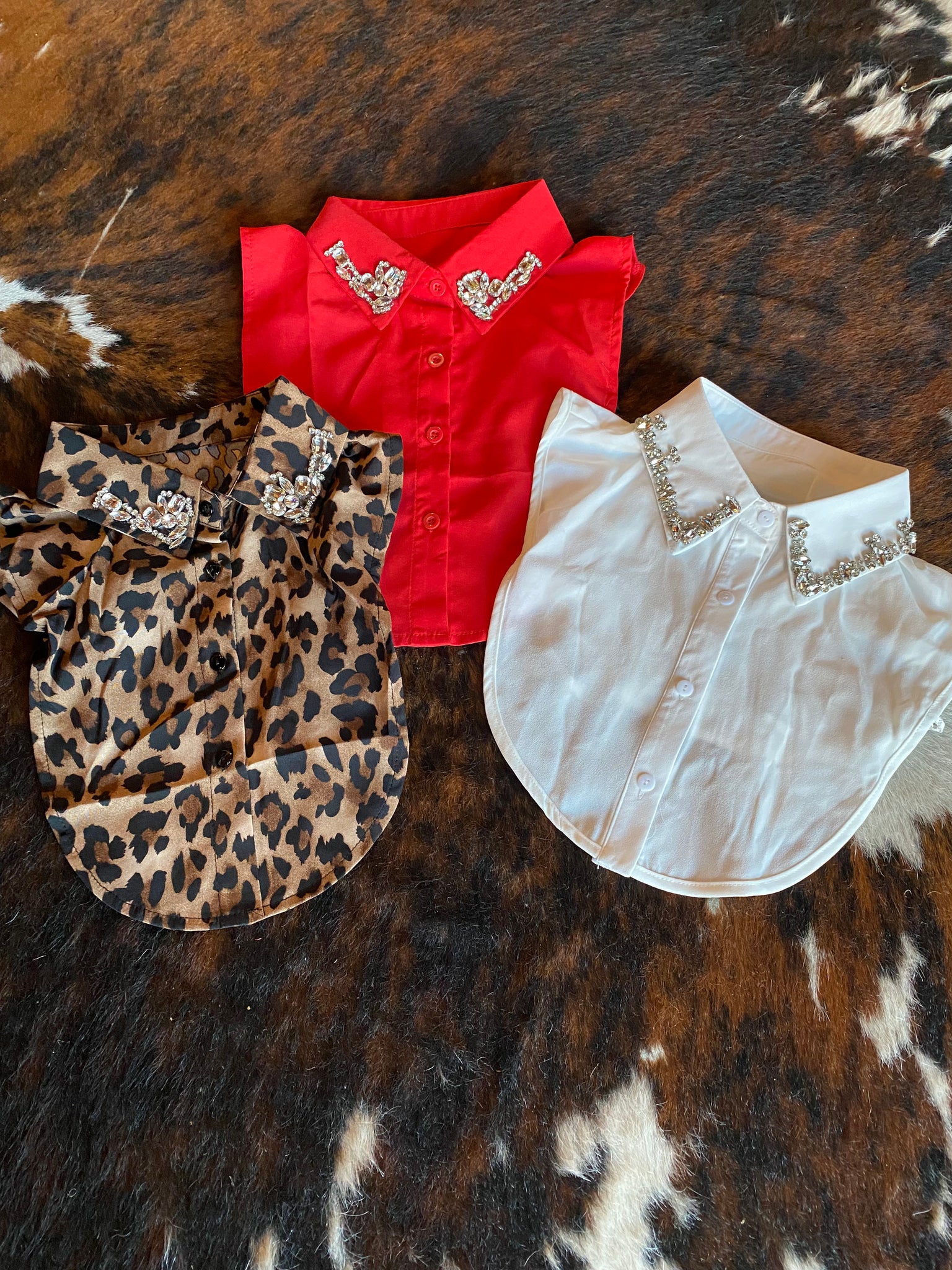 Collars that are embellished by rhinestones! Wear under sweaters, sweatshirts, tees, etc to make a statement!! OS fits most.