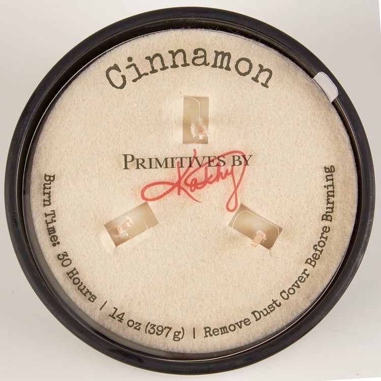 A jar candle displaying a double-sided design of a sheep wearing a Christmas wreath on frosted black glass. Design is replicated from original artwork painted onto burlap canvas, giving the art a unique depth and texture. Seasonal candle features soy-based wax and 3 fabric wicks with 30 hours of burn time activating a calming Cinnamon scent.
